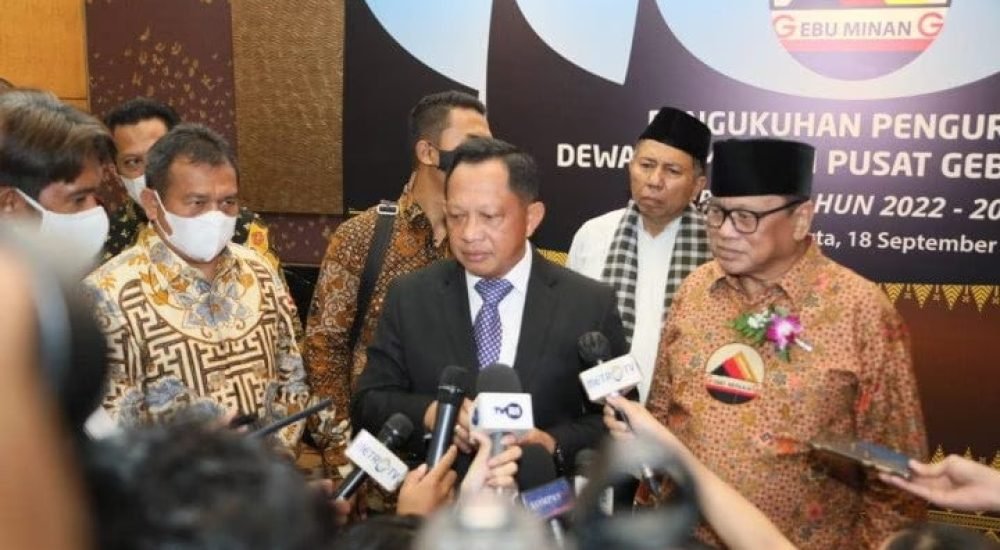 Jakarta,- Lebih kurang 1000 orang tokoh Minang menghadiri acara pengukuhan Oesman Sapta Odang sebagia Ketua Umum Gebu Minang Periode 2022-2027 yang bertempat di Hotel Mulia Senayan Minggu (18/9/2022). Selain para tokoh Minang baik yang di perantauan maupun yang di kampung halaman, acara pengukuhan ini juga dihadiri oleh Menteri Dalam Negeri Tito Karnavian, Gubernur Sumbar Mahyeldi serta para Ketua DPRD kab/kota se Sumatera Barat.