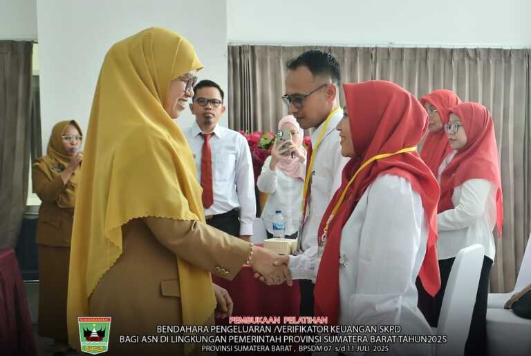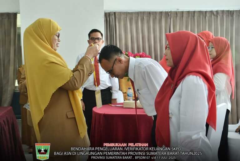 PADANG – Sumbarinfo.com, – KeuanganKepala BPSDM Prov. Sumbar, Bunda Dr. Ir. Desniarti, MM., membuka secara resmi Pelatihan Bendahara/Verifikator Keuangan SKPD bagi ASN Pemprov Sumbar, Senin (07/07/2025), sebanyak 30 orang.