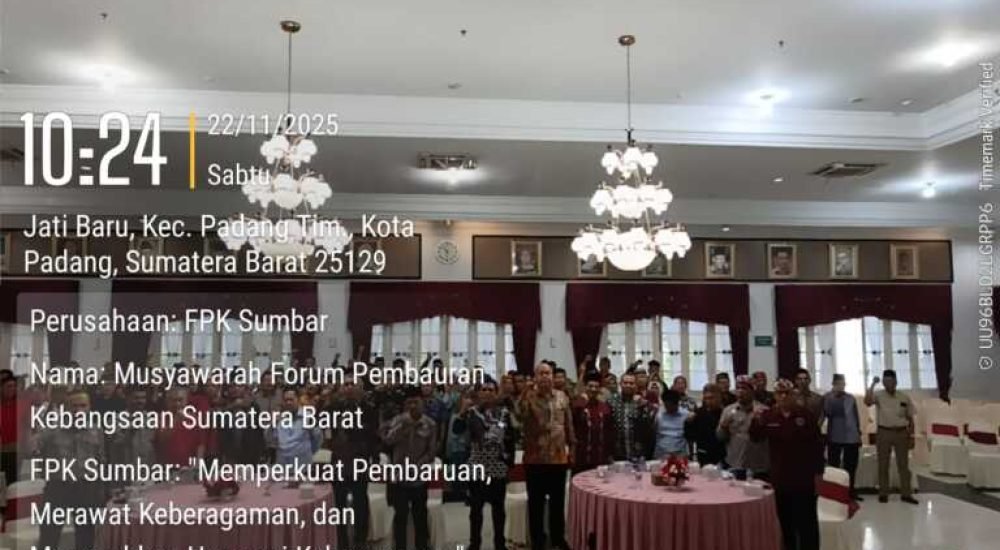 Padang — Sumbarinfo.com,- Forum Pembauran Kebangsaan (FPK) Provinsi Sumatera Barat resmi menetapkan Ir. H. Maman Sudarman, MM sebagai Ketua terpilih masa bhakti 2025–2030 pada Musyawarah Provinsi (Musprov) yang digelar di Auditorium Istana Gubernur- Padang, Sabtu 22 November 2025. Pemilihan berlangsung melalui mekanisme voting terbuka yang diikuti oleh para pemegang hak suara dari unsur etnis dan pengurus FPK.