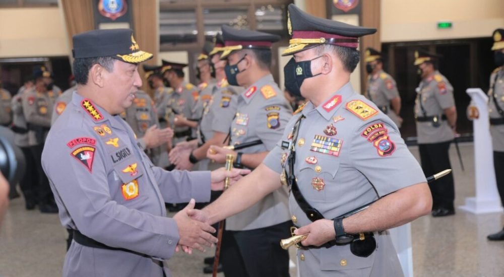 Kapolri Jenderal Polisi Listyo Sigit Prabowo, M.Si melantik Irjen Pol Suharyono, S.Ik. SH sebagai Kapolda Sumbar di Mabes Polri, Jakarta, Selasa, (18/10) siang.