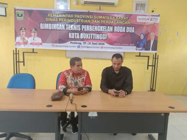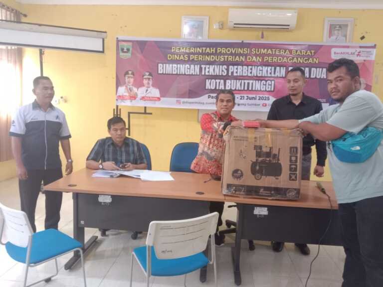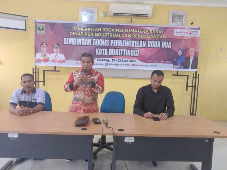 Padang– Sumbarinfo.com, -Kadis Perindustrian dan Perdagangan Prov Sumatera Barat diwakili Kepala UPTD Logam Darman, ST, MM menutup secara resmi Bimbingan Teknis Perbengkelan Roda Dua bagi IKM Kota Bukittinggi bertempat di Aula UPTD Logam, Gadut, Sabtu (21/6/2025).