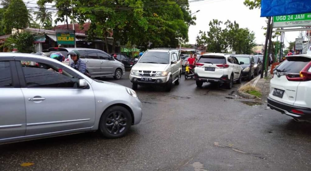 “Akibat antrian yang terjadi maka arus lalu lintas ruas jalan tersebut terganggu mengingat volume kendaraan mulai dari roda dua sampai roda enam banyak melintas pada ruas jalan tersebut,” ungkapnya.