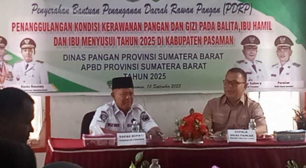 ” Merupakan Kebahagian Dan Kehormatan Bagi Kita Bersama Karena Dari 19 (Sembilan Belas) Kabupaten/Kota Di Provinsi Sumatera Barat Hanya Tiga Daerah Yang Menerima Bantuan Penanganan Daerah Rawan Pangan Dari Pemerintah Provinsi Sumatera Barat Tahun 2025 Salah Satunya Daerah Kita Kabupaten Pasaman”