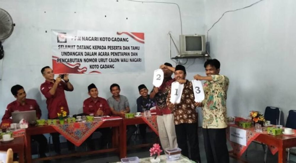 Dharmasraya, Sumbarinfo- Penetapan nomor urut calon walinagari koto gadang Kecamatan Koto Besar kabupaten Dharmasraya, miliki tiga calon kandidat.