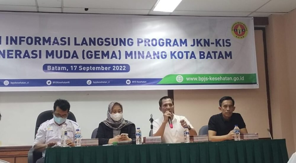 Batam, SumbarInfo, – Generasi Muda (Gema) Minang Kota Batam serius dalam menjalankan tupoksinya sebagai penyambung tangan dari warga Minang yang ada di kota Batam. Walaupun belum dilaksanakannya pelantikan kepengurusan Dewan Pimpinan Pusat (DPP) Gema Minang Kota Batam yang baru, Gema Minang Kota Batam langsung eksis dengan melakukan sosialisasi program JKN-KIS bersama BPJS Kesehatan Kota Batam bertempat di Asrama Haji Kota Batam, Sabtu (17-09-22).