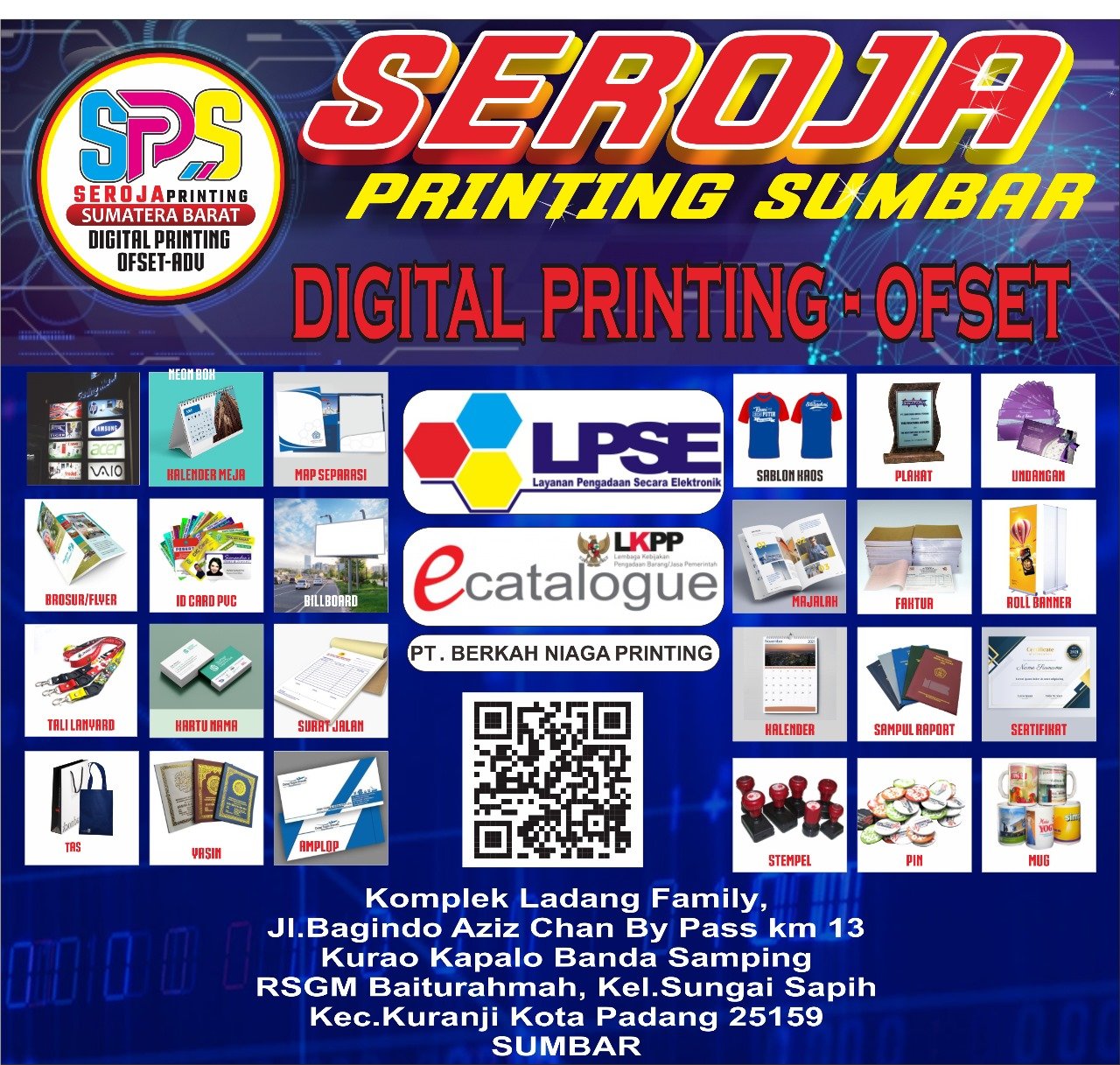 PADANG SUMBARINFO.COM — Seroja Printing Sumbar (SPS) siap memberikan layan terbaik untuk kebutuhan jasa percetakan Digital Printing dan Advertising dengan moto : ” layanan lebih cepat, mudah dan hasil lebih baik