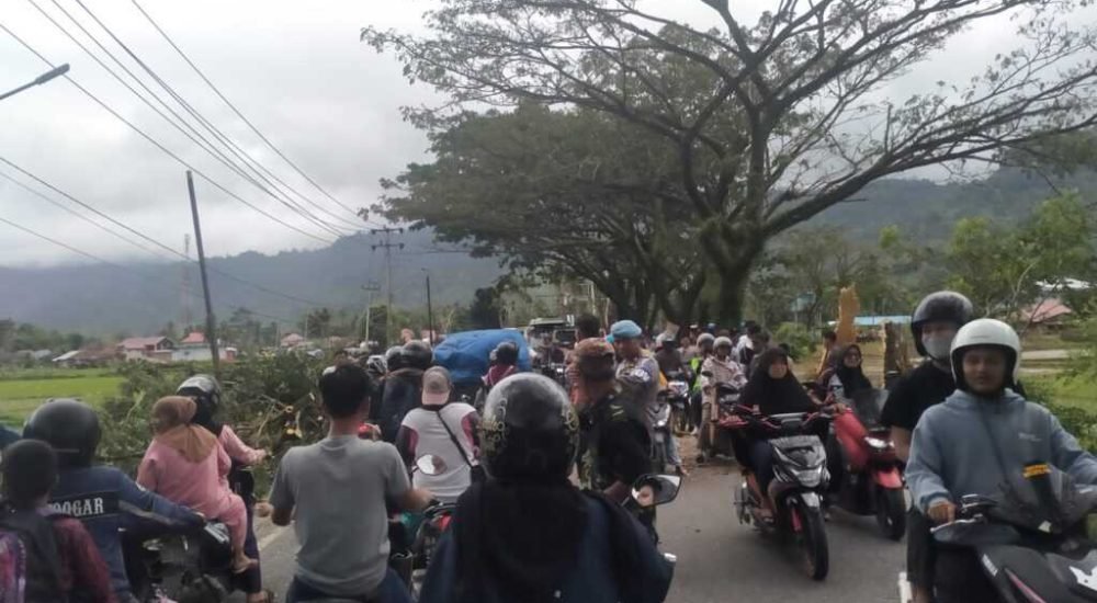 Tidak berapa lama, pohon tumbang berhasil dibersihkan dan jalan kembali bisa dilewati.