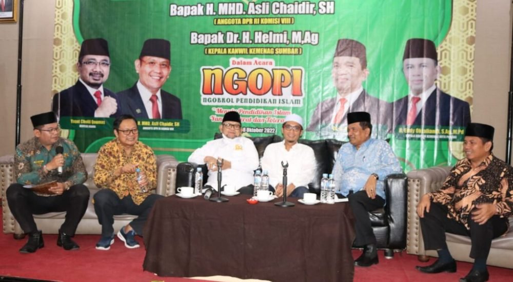 Kali ini Kementerian Agama Kota gelar kegiatan Ngobrol Pendidikan Islam (Ngopi) di Hotel Rang Kayo Basa Padang, Sabtu (08/10/22).